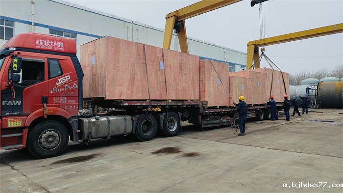此次发货的设备是用于石油开采单位的水处理,包括循环水旁滤设备、活性炭过滤器、反渗透机组、加药装置、膜元件及系统配件,因出口设备采用木箱打包处理,整体设备满装4辆大车发往连云港港口,再转运至刚果项目现场。